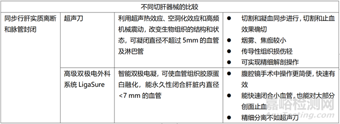 表4.超聲刀、LigaSure在同步行肝實(shí)質(zhì)離斷和脈管封閉時(shí)的推薦意見(jiàn)