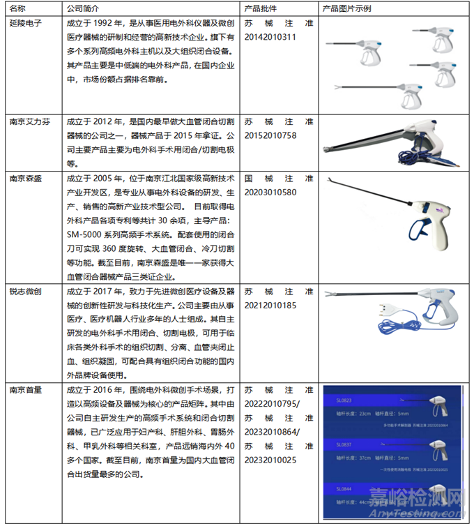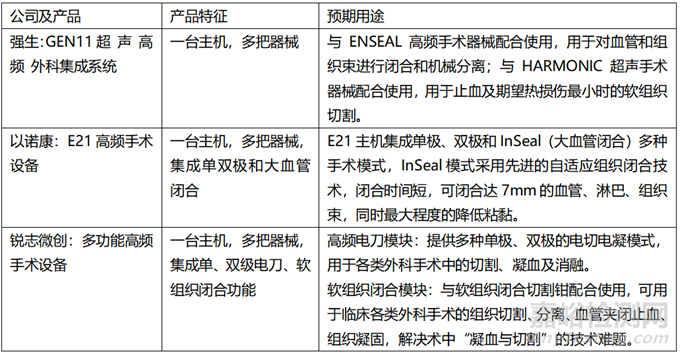 表5.國(guó)內(nèi)大血管閉合器已獲證產(chǎn)品