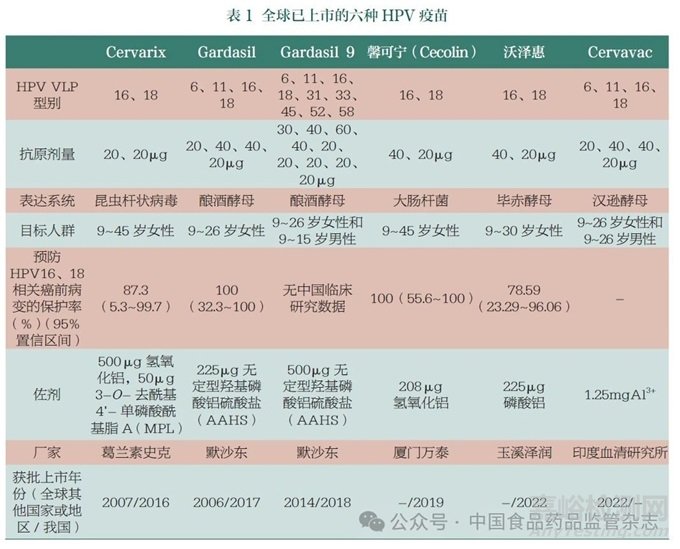 目前,我國女性群體能夠接種的商品化HPV 疫苗共有6 種,除了全球范圍內(nèi)使用的3 種HPV預(yù)防性疫苗外,我國國家藥品監(jiān)督管理局(NMPA)還批準(zhǔn)了2種我國自主研發(fā)的二價(jià)HPV 疫苗(表1)。值得關(guān)注的是,2019年首個(gè)國產(chǎn)二價(jià)HPV 疫苗馨可寧(Cecolin) 的獲批上市, 促進(jìn)了我國及其他發(fā)展中國家HPV疫苗接種計(jì)劃的推行。Cecolin采用了大腸桿菌表達(dá)系統(tǒng),生產(chǎn)成本低、產(chǎn)量高,每劑售價(jià)約為Cervarix 價(jià)格的一半, 但保護(hù)率相似。據(jù)報(bào)道,Cervarix 和Cecolin 兩種疫苗預(yù)防HPV16、18 相關(guān)6 個(gè)月持續(xù)性感染的保護(hù)率分別為96.8%(95%CI:88.0%~99.6%) 和97.7%(95%CI :86.2%~99.9%)。因此,Cecolin 的上市很好地解決了進(jìn)口HPV 疫苗價(jià)格高昂且供應(yīng)有限的問題。