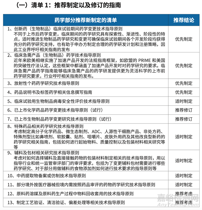 需要特別說明的是,對于部分藥學(xué)專業(yè)問題,如藥檢、工藝驗(yàn)證等共計(jì)二十項(xiàng)相關(guān)話題,因?yàn)樯婕翱绮块T協(xié)作或受其他法規(guī)文件限制,不能單純通過建立技術(shù)指導(dǎo)原則予以解決,推薦單獨(dú)立項(xiàng),逐步解決。
