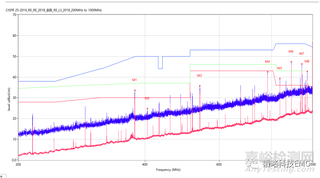 1.問(wèn)題分析:上圖為某個(gè)車載攝像頭在我司使用CISPR25-L3標(biāo)準(zhǔn)測(cè)試的200MHz-1000MHz頻段的數(shù)據(jù),我們可以看到378MHz、837MHz、891MHz、945MHz、972MHz是測(cè)試超標(biāo)的點(diǎn),而這個(gè)攝像頭使用的是一個(gè)27M的晶體,跟超標(biāo)的點(diǎn)有著倍數(shù)關(guān)系,分別是14倍、31倍、33倍、35倍、36倍;而在板子上并沒(méi)有其它晶體提供時(shí)鐘,所以我們推測(cè)這個(gè)問(wèn)題的源頭是這個(gè)晶振,所以使用頻譜儀進(jìn)行探測(cè),發(fā)現(xiàn)這些超標(biāo)點(diǎn)就是晶振到芯片的位置都比較高,進(jìn)而鎖定問(wèn)題源頭就是這個(gè)27M的晶體。