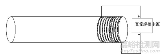換向電纜繞結(jié)法,采用在需要退磁的工件外表纏繞多匝大電流柔性電纜,而電纜則與固定式的直流磁化電源連接(如圖2)。