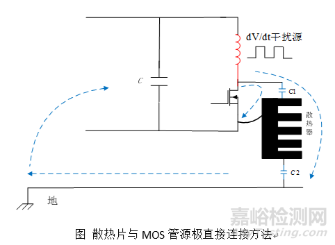 對(duì)于功率較小的電源,散熱片不與機(jī)箱連接,這時(shí)候可以將散熱片與MOS管的源極連接起來(lái),同樣可以減小傳導(dǎo)發(fā)射。