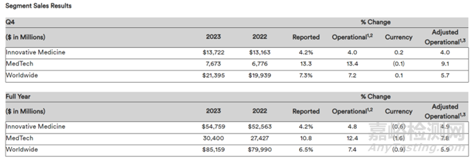 1月23日,強(qiáng)生公布2023年財(cái)報(bào)。2023全年強(qiáng)生銷售額852億美元,同比增長(zhǎng)6.5%。