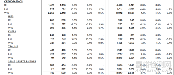骨科領(lǐng)域,膝關(guān)節(jié)板塊增長(zhǎng)最多,全年銷售額14.56億美元,同比增長(zhǎng)7.1%;體量最大的創(chuàng)傷板塊銷售額29.79億美元,同比增長(zhǎng)3.8%。