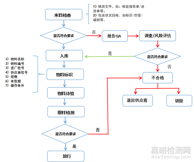 三、 物料從接收到放行的管理流程和要點(diǎn)