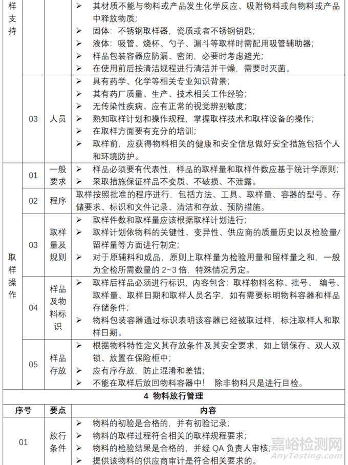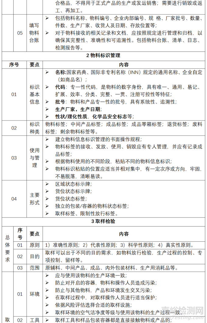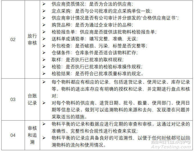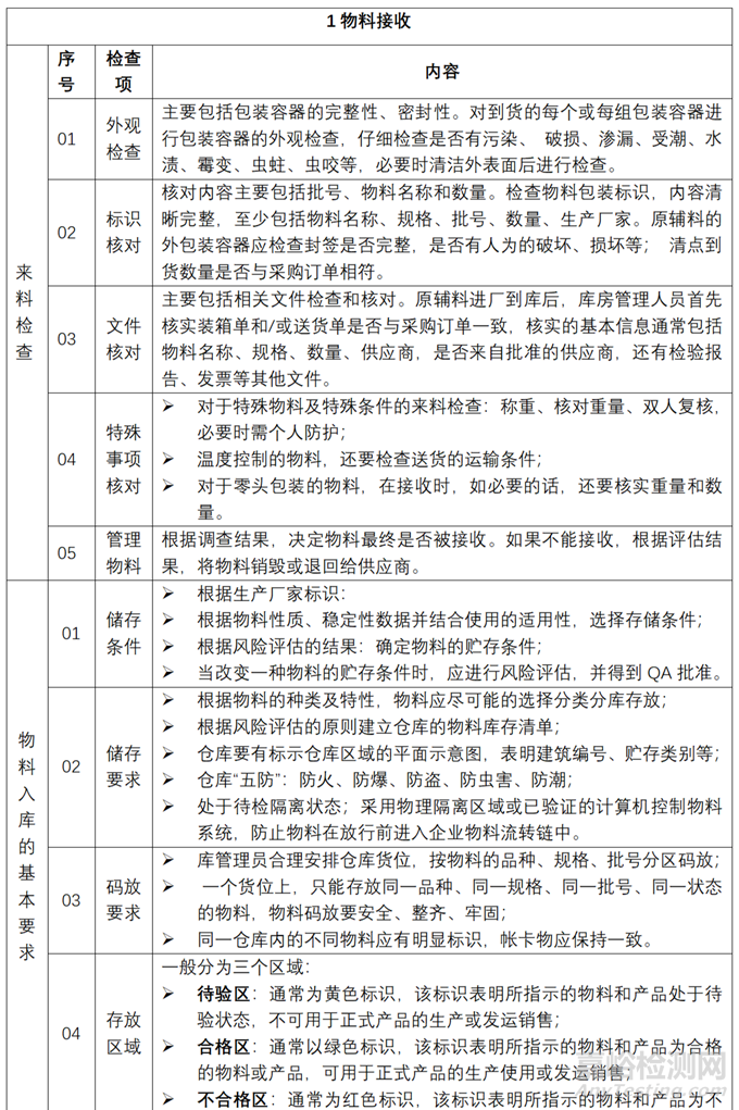 ▲表2-物料從接收到放行管理的要點(diǎn)和內(nèi)容