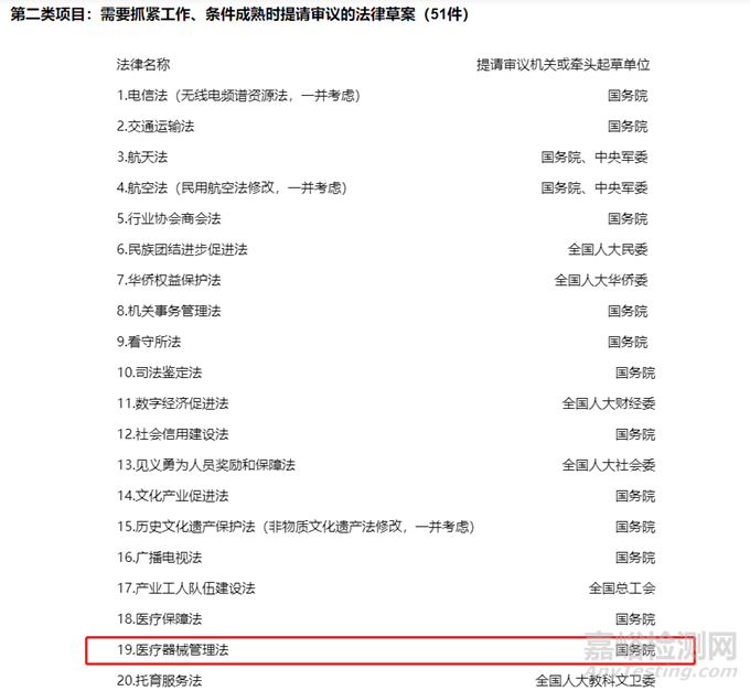 2023年9月《十四屆全國人大常委會立法規(guī)劃》發(fā)布,其中《醫(yī)療器械管理法》列入到第二類項目: