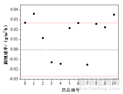 采用腐蝕前后重量差計算腐蝕速率v(g/(m2•h)),公式如下: