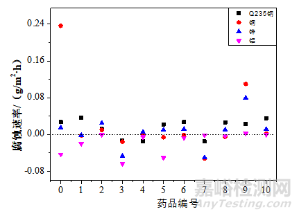 主要通過接觸性腐蝕、電化學(xué)測試判斷其對金屬的腐蝕性及緩蝕性。