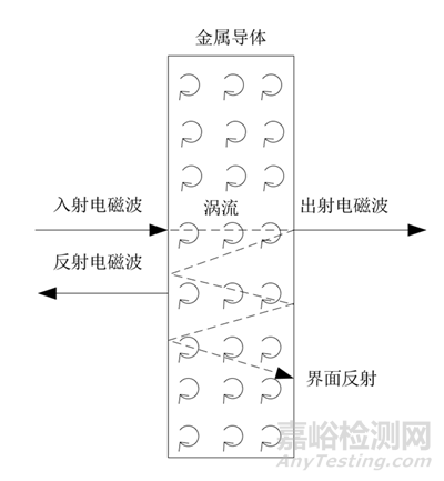 在屏蔽體內尚未衰減掉的剩余能量, 傳到材料的另一表面時,遇到金屬-空氣阻抗不連續(xù)的交界面, 會形成再次反射, 并重新返回屏蔽體內。