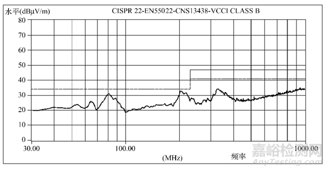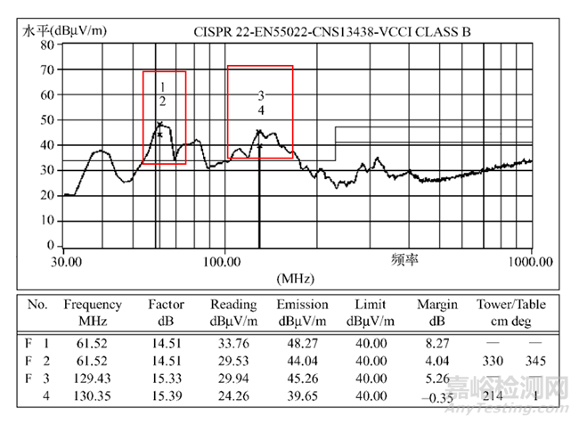 去除電源的金屬 “ 屏蔽”外殼后, 測試反而能通過?其測試頻譜圖如下所示: