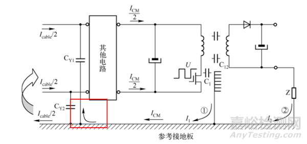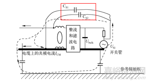 如果沒有額外的路徑, 這兩種共模電流流入?yún)⒖冀拥匕逯? 將流回開關電源的輸入電纜。