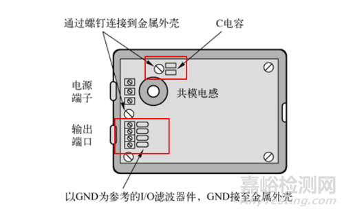 通過測試,去除 “屏蔽” 外殼后輻射發(fā)射測試反而可以通過, 說明屏蔽外殼的增加, 不但沒有減小輸入/ 輸出電纜上流動的共模電流, 而且還增加了輸入/ 輸出電纜上流動的共模電流。