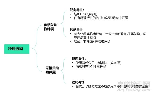 siRNA藥物化學(xué)合成藥物,雖具備生物制品屬性,但按新化學(xué)實體監(jiān)管。所以不僅在科學(xué)認(rèn)知上存在一些缺口,也存在一些監(jiān)管指南空缺。目前中國尚無相關(guān)指導(dǎo)原則。除了ICH系列指導(dǎo)原則外(ICH S6/M3/S7/S2/S8),日本PMDA 2020年發(fā)布了《寡核苷酸治療產(chǎn)品非臨床安全性評價指導(dǎo)原則》可供參考;FDA也發(fā)布了用于工業(yè)界的相關(guān)指導(dǎo)原則,如《寡核苷酸治療藥物開發(fā)的臨床藥理學(xué)考慮》等。根據(jù)日本PMDA發(fā)布的《寡核苷酸治療產(chǎn)品非臨床安全性評價》指導(dǎo)原則,siRNA藥物需要2個種屬進行臨床前安全性評價,嚙齒類為大鼠或者小鼠,非嚙齒類一般為食蟹猴。目前已上市的6款siRNA,非嚙齒類均是食蟹猴,嚙齒類分別為大鼠(5款)、小鼠(Nedosiran)。非嚙齒動物選擇猴的主要原因如下:猴和人的目標(biāo)mRNA具有高度或完全同源性,而且猴種屬可以更好地評估siRNA放大的藥理學(xué)效應(yīng),比如Inclisiran核苷酸序列與人和猴PCSK9中的類似序列完全同源,且用猴開展藥效。siRNA藥物臨床前評價動物種屬選擇見圖2。