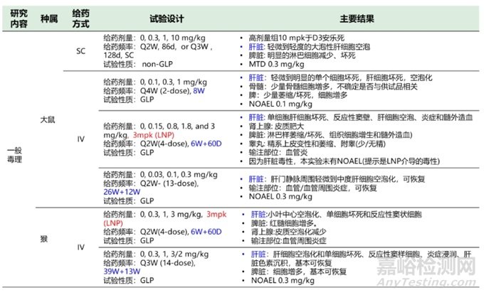 表2六款siRNA藥物臨床前安評試驗總結(jié)