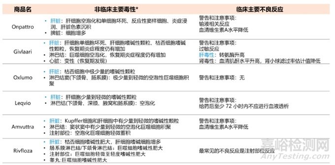 表6六款上市siRNA藥物免疫毒性總結(jié)(“-”表示未披露)