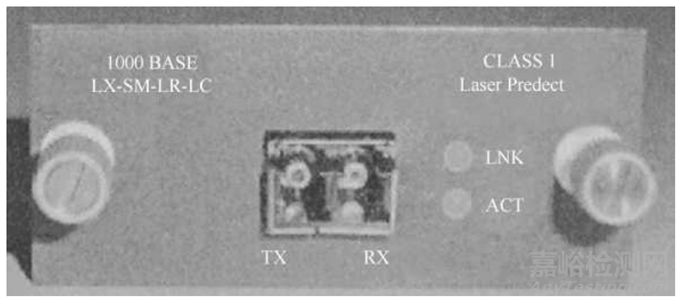 某產(chǎn)品有若干百兆以太網(wǎng)接口,同時(shí)有兩個(gè)光接口(LC接口,如下圖所示)的千兆擴(kuò)展口,并且外殼采用屏蔽處理。