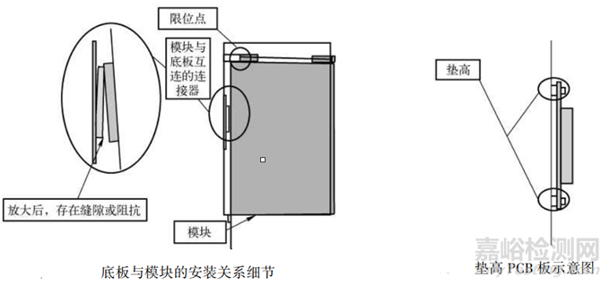 處理措施中除了將導電膠條加厚增加在兩個導體之間的壓縮量之外,還可以在導電膠條厚度不變的情況下通過將底板PCB墊高來增加壓縮量來實現,如下圖所示: