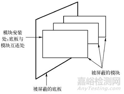 其次用近場探頭進行探測發(fā)現,在該產品的模塊安裝處的輻射最大,其結構安裝示意圖如下所示:
