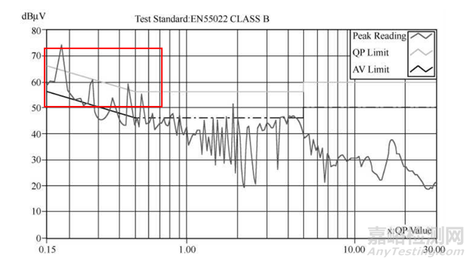 使用非屏蔽變壓器時(shí)傳導(dǎo)騷擾測試結(jié)果