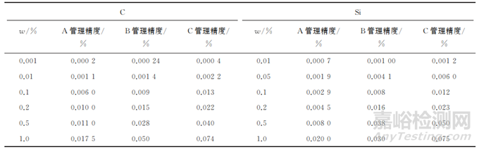 表1 鋼鐵成分重復性分析誤差
