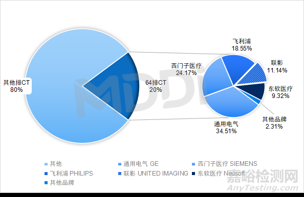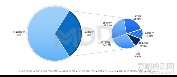 圖 1 2023年我國(guó)64排CT市場(chǎng)份額情況(銷(xiāo)售金額)