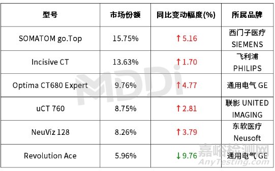 從具體型號(hào)來(lái)看,西門(mén)子醫(yī)療的SOMATOM go.Top市場(chǎng)份額增長(zhǎng)最高,其獨(dú)有的AI集成智能平臺(tái)可以在CT設(shè)備掃描完即可獲得診斷信息,極大的提高了診斷效率,憑借全球首創(chuàng)“診立得”技術(shù)開(kāi)創(chuàng)了CT智慧診斷的先河,SOMATOM go.Top市場(chǎng)份額進(jìn)一步增長(zhǎng),以15.75%的市場(chǎng)份額領(lǐng)跑64排CT;此外,GE醫(yī)療的Optima CT680 Expert產(chǎn)品市場(chǎng)份額增長(zhǎng)明顯,相比較Revolution Ace,Optima CT680 Expert的性?xún)r(jià)比更為出色。