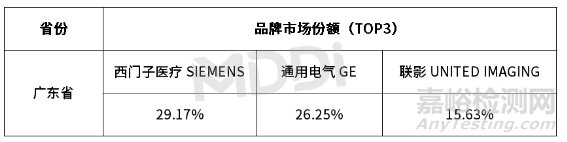 表 3 2023年各省份64排CT品牌市場(chǎng)份額情況(銷(xiāo)售金額)