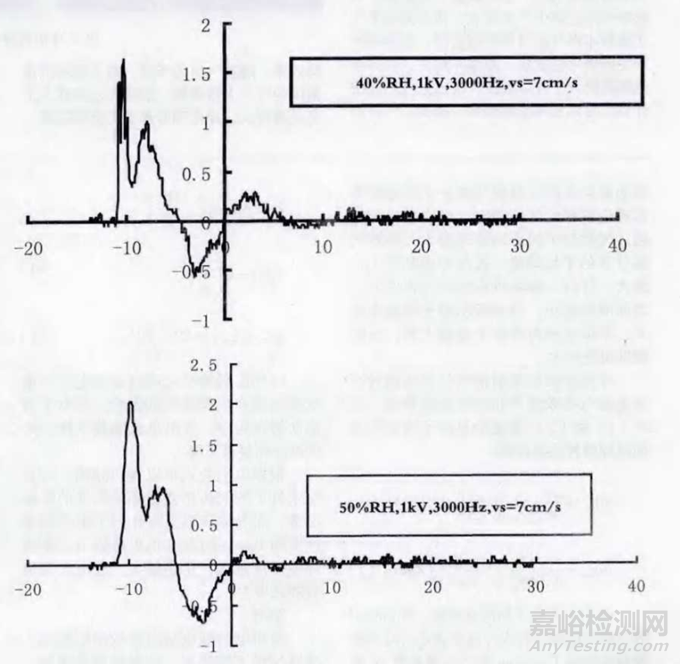 對(duì)靜電測(cè)試重復(fù)性影響最大的環(huán)境因素就是濕度,空氣濕度的變化對(duì)放電參數(shù)的影響,見(jiàn)下圖: