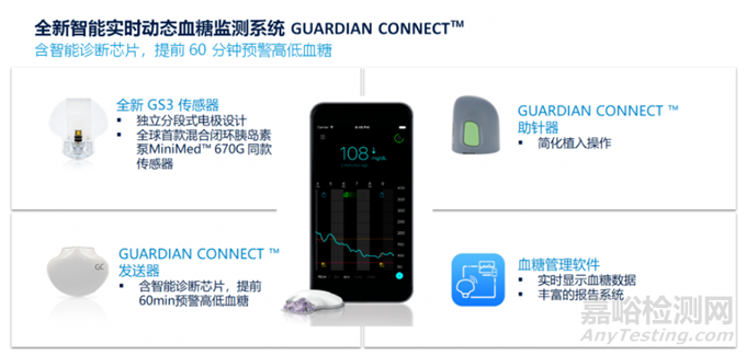 RGMS-III由血糖接收器,血糖發(fā)射器,一次性血糖傳感器(探頭),植入器,用戶分析軟件等組件構成。