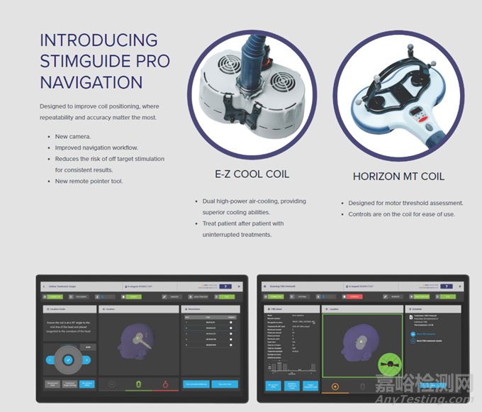 StimGuide Pro的Horizon 3.0是第一個(gè)帶有導(dǎo)航功能的集成TMS系統(tǒng)。它包括新的先進(jìn)相機(jī)技術(shù)和軟件,旨在實(shí)現(xiàn)精確的治療目標(biāo)。該系統(tǒng)將所有患者治療和技術(shù)集中在一個(gè)屏幕上,以降低復(fù)雜性。它還具有藍(lán)牙解剖指針,用于繪制和治療患者。