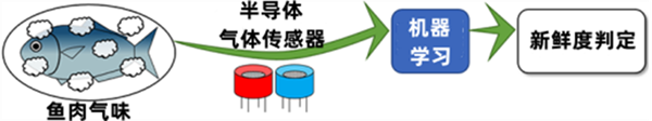 AIST開發(fā)了一種氣味判定的新型傳感技術(shù)。因?yàn)槭且贼~肉氣味為對象,所以這是一種無損檢測,不需要對魚肉采樣。AIST與北海道立工業(yè)技術(shù)中心開展合作,共同分析了不同新鮮度等級(jí)的魚肉氣味。根據(jù)分析結(jié)果,制備了模擬新鮮度指標(biāo)得氣體。利用對這些指標(biāo)氣體的測量結(jié)果作為學(xué)習(xí)數(shù)據(jù),通過機(jī)器學(xué)習(xí),在現(xiàn)場憑借魚肉氣味即可判定新鮮度。