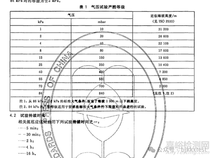 低氣壓試驗嚴(yán)酷等級:氣壓值,保持時間。