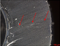 圖1. NG件斷裂螺柱內部孔洞放大圖