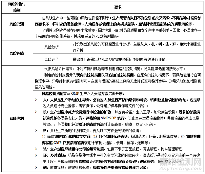 有關共線生產(chǎn)評估和控制的基本要求,請參見表2。