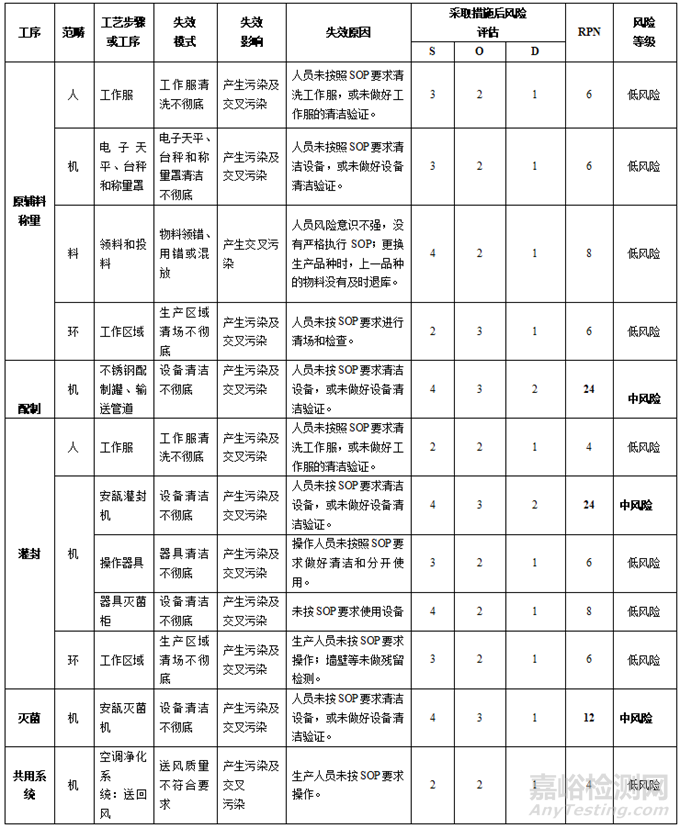 通過工藝流程分析,需要考慮每道工序的生產(chǎn)過程中可能發(fā)生混淆和交叉污染的風險點??紤]到人、機、料、法、環(huán)、測等六個方面,以確保不遺漏任何風險點。重點分析關鍵生產(chǎn)工藝是否容易受共線生產(chǎn)的另一產(chǎn)品的干擾,而最終滅菌小容量注射劑的關鍵生產(chǎn)工藝包括配制、灌封和滅菌。