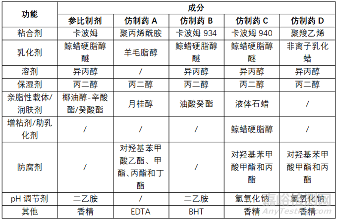 ▲表1-不同廠家雙氯芬乙二胺乳膠制劑的處方對(duì)比*