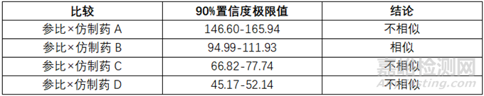 ▲表2-參比制劑和4種市售仿制藥制劑之間差異的統(tǒng)計(jì)檢驗(yàn)
