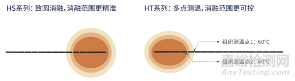 微波消融單針產(chǎn)生一個直徑3-5cm的球形或橢球形熱區(qū),橢球形熱區(qū)不利于小尺寸的腫瘤消融,對正常組織的損傷大,其更適用于大尺寸腫瘤的治療。球形熱區(qū)方便臨床治療范圍規(guī)劃,對正常組織損傷更小。