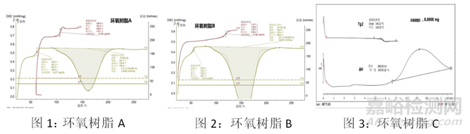 玻璃化轉(zhuǎn)變是指無定形或半結(jié)晶的聚合物材料中的無定形區(qū)域在降溫過程中從橡膠態(tài)或高彈態(tài)轉(zhuǎn)變?yōu)椴AB(tài)的一種可逆變化。在橡膠態(tài)/高彈態(tài)時(shí),分子能發(fā)生相對移動(即分子重排),在玻璃態(tài),分子重排被凍結(jié)。①當(dāng)溫度達(dá)到聚合物的玻璃化轉(zhuǎn)變溫度時(shí),聚合物的比熱容、熱膨脹系數(shù)、自由體積、以及彈性模量等都要發(fā)生一個(gè)突變。 環(huán)氧樹脂也是聚合物,是重防腐粉末涂料的主要成膜物質(zhì)之一,其結(jié)構(gòu)和性能對所制得的涂膜Tg和性能起著決定性作用。如果環(huán)氧粉末涂料涂膜使用長期服役溫度超過其自身涂膜的Tg,將會導(dǎo)致環(huán)氧涂層失去對基材的防護(hù)作用,導(dǎo)致基材被腐蝕。不同品種的環(huán)氧樹脂,因結(jié)構(gòu)、分子量、聚合度、軟化點(diǎn)和環(huán)氧值等參數(shù)不同,可制得對應(yīng)不同涂膜Tg和性能的環(huán)氧涂料。針對不銹鋼管線運(yùn)行溫度,選擇合適的涂膜Tg點(diǎn)至關(guān)重要。不同環(huán)氧樹脂制成涂膜后的Tg對比試驗(yàn)結(jié)果見表2,檢測圖分別見圖1、圖2和圖3。