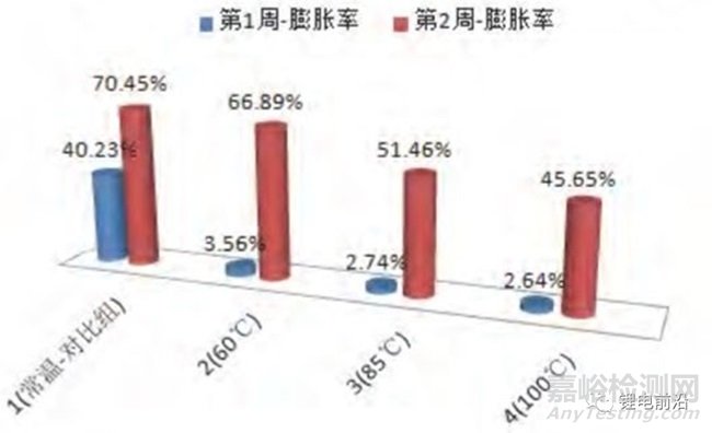 圖 1 各階段熱沖擊后電芯膨脹率柱狀圖