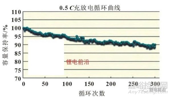 由圖5可知,取分容后新電池經(jīng)85℃48h反復沖3次,模擬造成熱沖擊接近脹氣邊緣狀態(tài),電池的300周容量保持率仍>85%,循環(huán)性能佳。
