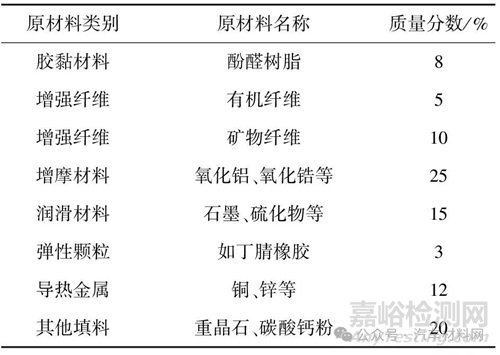 表1 摩擦材料的主要組分