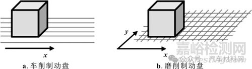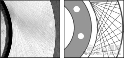 圖1 磨削制動(dòng)盤表面狀態(tài)及加工紋路示意