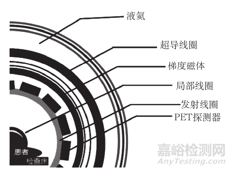 提供掃描架內(nèi)部結(jié)構(gòu)圖或剖面圖,詳述磁體、線圈和探測(cè)器的位置排布(例如圖1)。