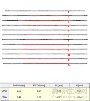 中心視野(CFOV)的半高寬(FWHM)和十分之一高寬(FWTM)結(jié)果;