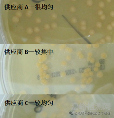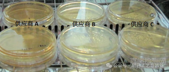 目的:通過對比 3 家不同供應(yīng)商的無菌預(yù)灌裝培養(yǎng)平皿實驗結(jié)果,篩選出質(zhì)量較好的平皿培養(yǎng)基,同時探討其供應(yīng)商篩選、進(jìn)廠檢查和使用方法,為無菌藥品生產(chǎn)企業(yè)進(jìn)行無菌預(yù)灌裝培養(yǎng)平皿的質(zhì)量控制工作提供參考。