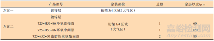 表 3 海上光伏桁架樣板防腐對(duì)比方案