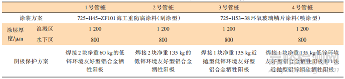 鋼管樁涂裝及陰極保護(hù)方案如表2所示。